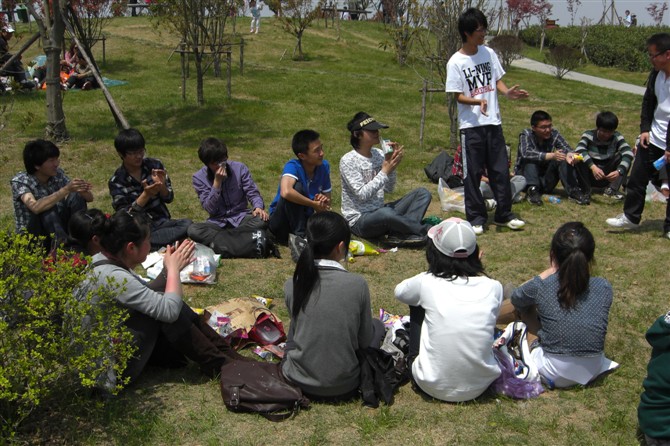 早上9点大家在北门集合,坐上了去栖霞山的大巴。由于两院同学并不熟悉,而且周六风景区游客较多,到了栖霞山后并未依照原定计划集体行动而是三五成群各自游玩。在自由活动中,两院部分同学已经互相认识。下午一点半,大家在大草坪上集合,席地而坐,开展了一次简短的经验交流会。首先,两院学生会各部门成员作了自己我介绍,并对部门工作和特色做了简单的说明,让彼此之间有了一定的了解。接着两院同一部门的同学单独进行了交流并作了深入探讨,互相取长补短,为把部门建设得更好而出谋划策。然后大家分成两组,一起玩了猜数字大冒险的游戏,把活动推向了高潮,两院同学其乐融融,就像一家人,欢声笑语传遍了整个操场,连其他游客也被大家的开心所感染了。最后,所有人一起合影留念,结束了一天的活动。