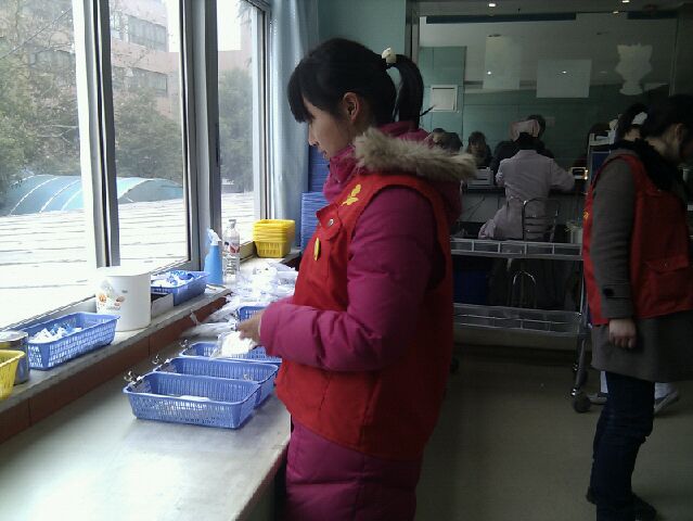上午7点,蒲爱园会长路莹同学向12名志愿者简单介绍了此次活动的任务及目的,之后由孙伟同学带队前往儿童医院。到达儿童医院后,医院董老师对同学们分配了工作。12名同学被平均分配到门诊一楼大厅、急诊输液室和11楼B超检查。工作从9点开始。一楼大厅同学负责指引家长、回答家长一些简单问题及帮助有需要的家长打印就诊结果。急诊输液室的同学则在急诊穿刺处维持秩序,配合导医工作,也协助护士穿刺做准备。B超检查处的同学为家长指引,配合导医工作。
