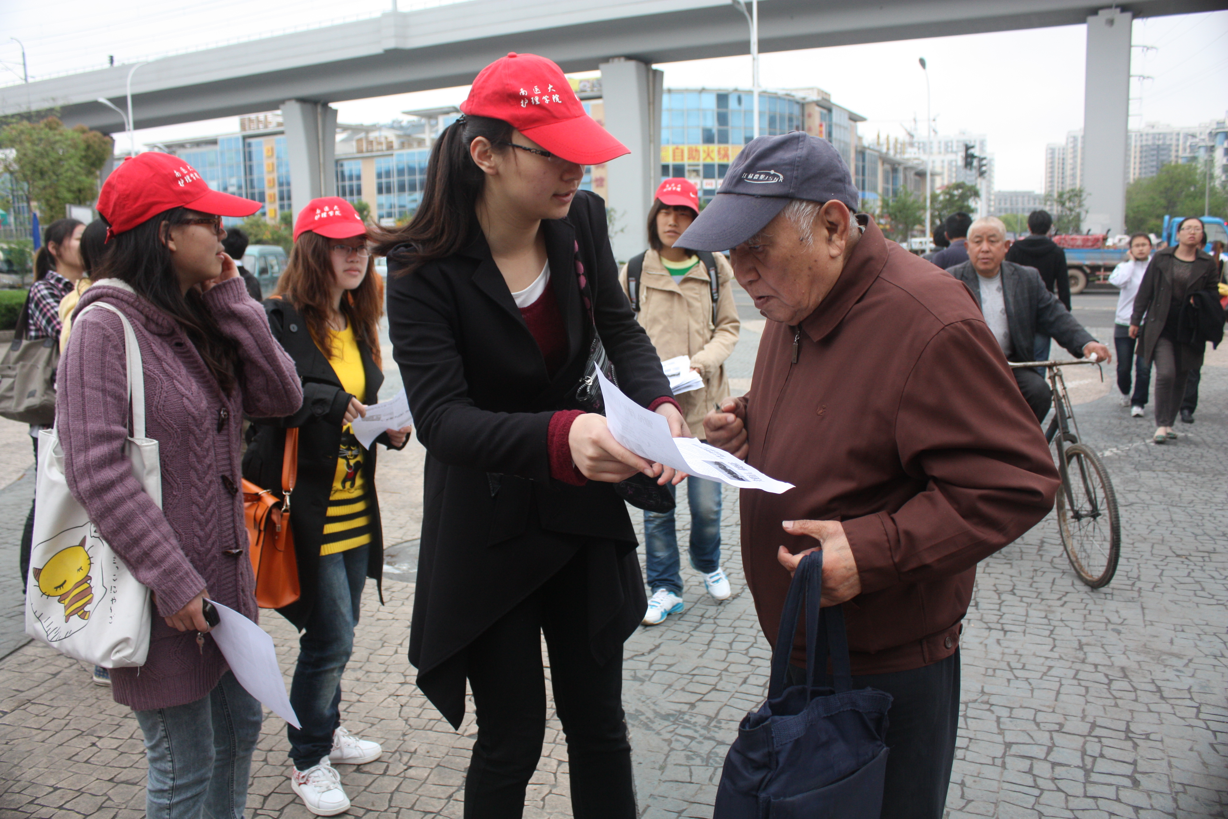 2012年4月21日上午,米兰(中国)让运动改变生活的部分同学在义乌小商品城开展了一场非常有意义的宣传活动,主题是提倡大家积极的关心身边的盲人群体,积极地为他们录制一些有声读物,让他们能够汲取更多的知识财富。