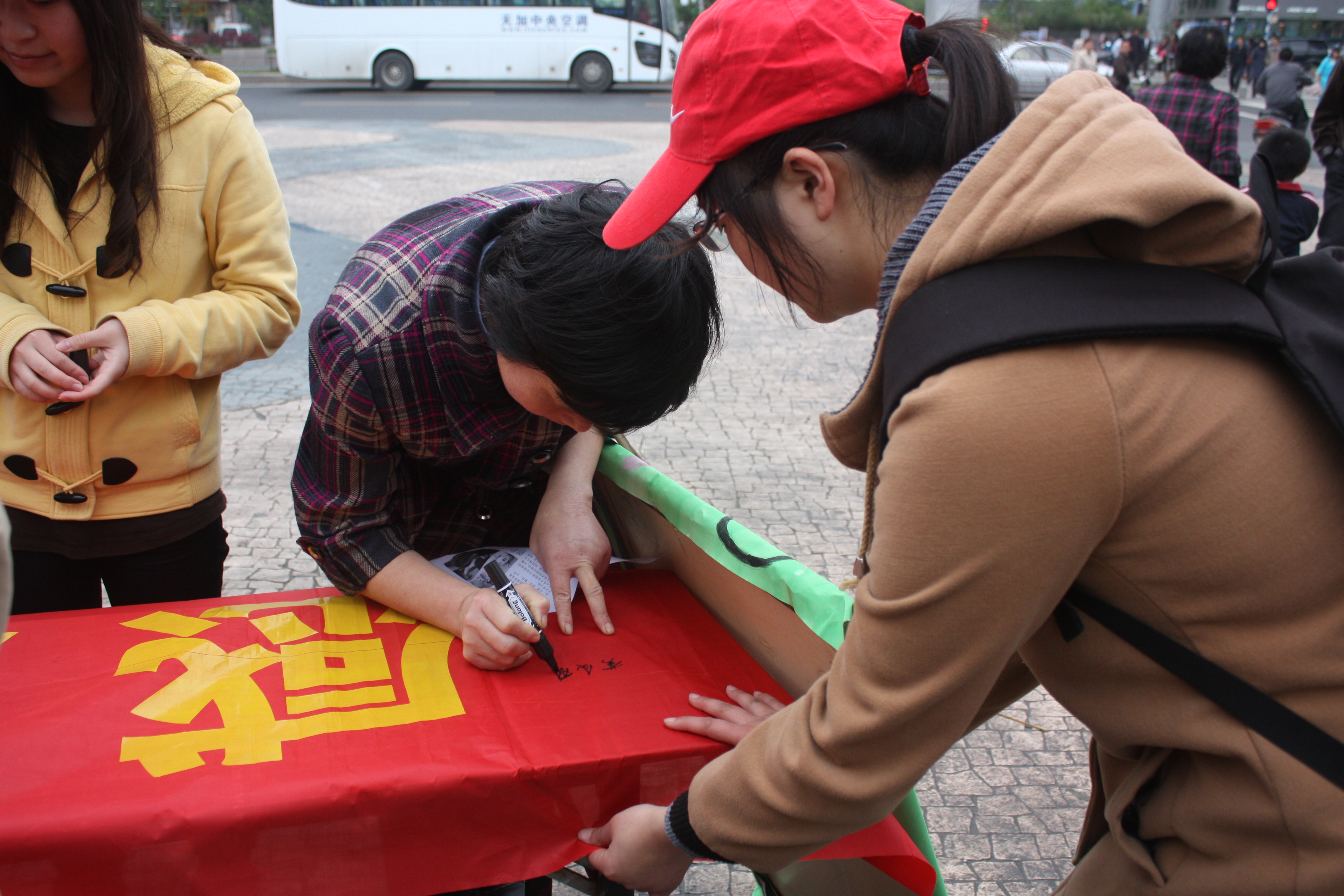 在活动现场,同学们个个都以饱满的热情向来来往往的过路人宣传着我们的这次有声读物活动,在大家坚持与努力之下,许多行人都纷纷了解到了我们活动的意义,由一开始的行色匆匆到驻足停留,再到为我们的横幅签上他们宝贵的姓名。越来越多的行人开始关心起我们的活动,横幅上的签名也越来越多。早在本次活动之前,米兰(中国)让运动改变生活蒲爱园和学院团总支就在全校宣传过,并招募了很多录音人员,部分的录音已经完成。