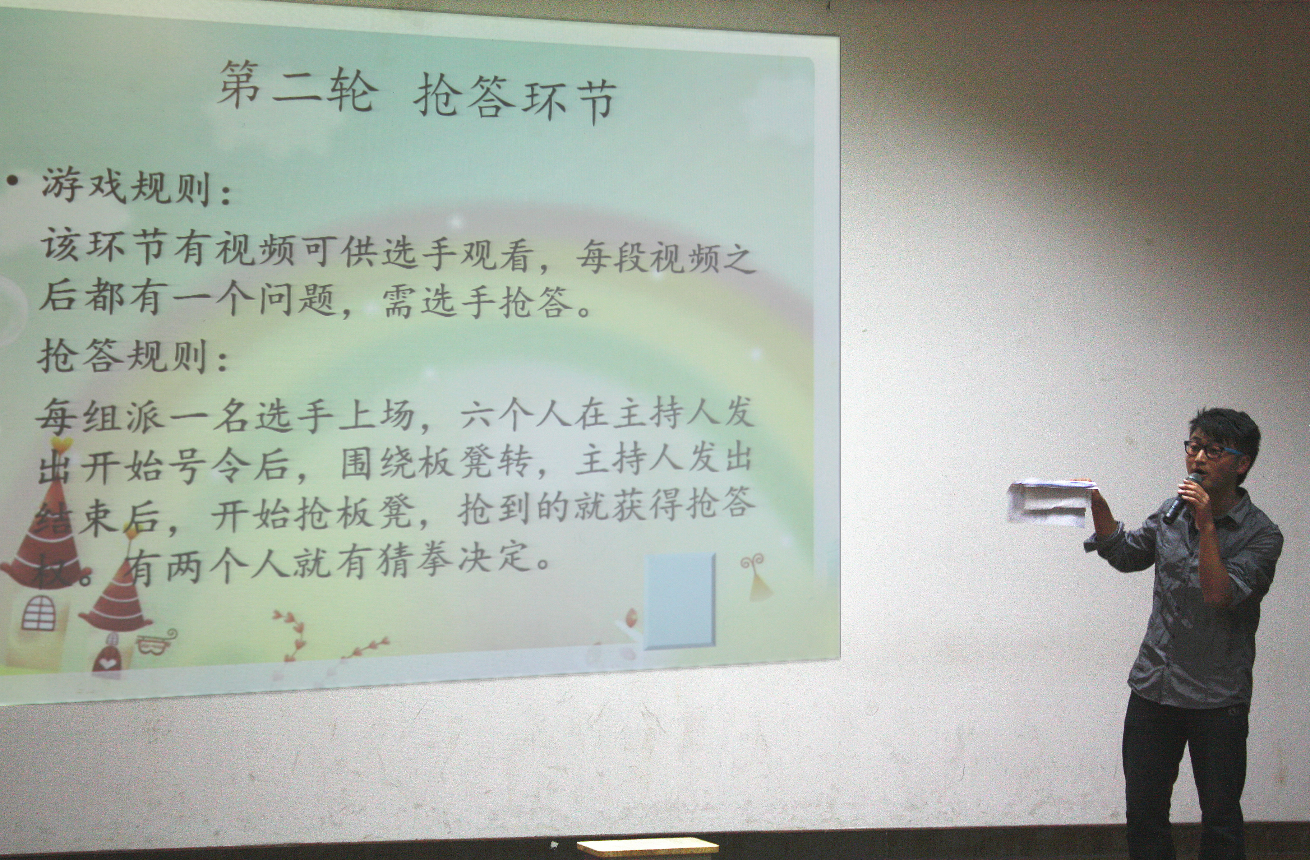 从4月12日开始,主要负责人就开始准备了。这场知识竞赛主要分两场,知识涉及消费、急救、交通等等各个方面。4月14日在阶4举行了初赛——笔试。经过同学们的充分准备,一轮的比拼,有六组队伍脱颖而出,进入了决赛。决赛在19日晚上6点半的大学生活动中心的多功厅举行了。活动还邀请了保卫处的徐治国老师以及主席团的一些同学作为嘉宾。比赛分三个环节,轮流答题,看视频抢答以及挑战不同分值的题型。同学们的表现让人大吃一惊,有的在主持人题目都没有读完,答案就说出来了。看视频抢答,大家以经典的抢板凳的游戏来抢答,各位上场的选手们为了小队的成绩,牺牲了自己平时淑女文静的形象,使出全力地为自己的队伍抢到宝贵的回答机会。有一个视频是由江苏警官学院的同学给选手们拍的视频,题目中的问题难倒了选手们。比赛十分激烈,经过层层角逐,终于产生了第一名。中场休息时,一首好听的《谁》,让大家在激烈的头脑风暴中放松一下;情景剧《中国式过马路》,以小崔说事的电视台为背景,再转换到老奶奶闯红灯过马路的现场,最后镜头又回到电视台,主持人请专家进行了点评。同学们幽默诙谐的表演,让在场的嘉宾及观众捧腹大笑。游戏“你来比划我来猜”,同学们更是踊跃报名想要参加。看着台上同学一个卖力地比划着,一个却猜出千奇百怪的答案,让在场的人都开怀大笑。一个小时很快地就过去了,大家在愉快的氛围里,收获了快乐的同时也收获安全知识。
