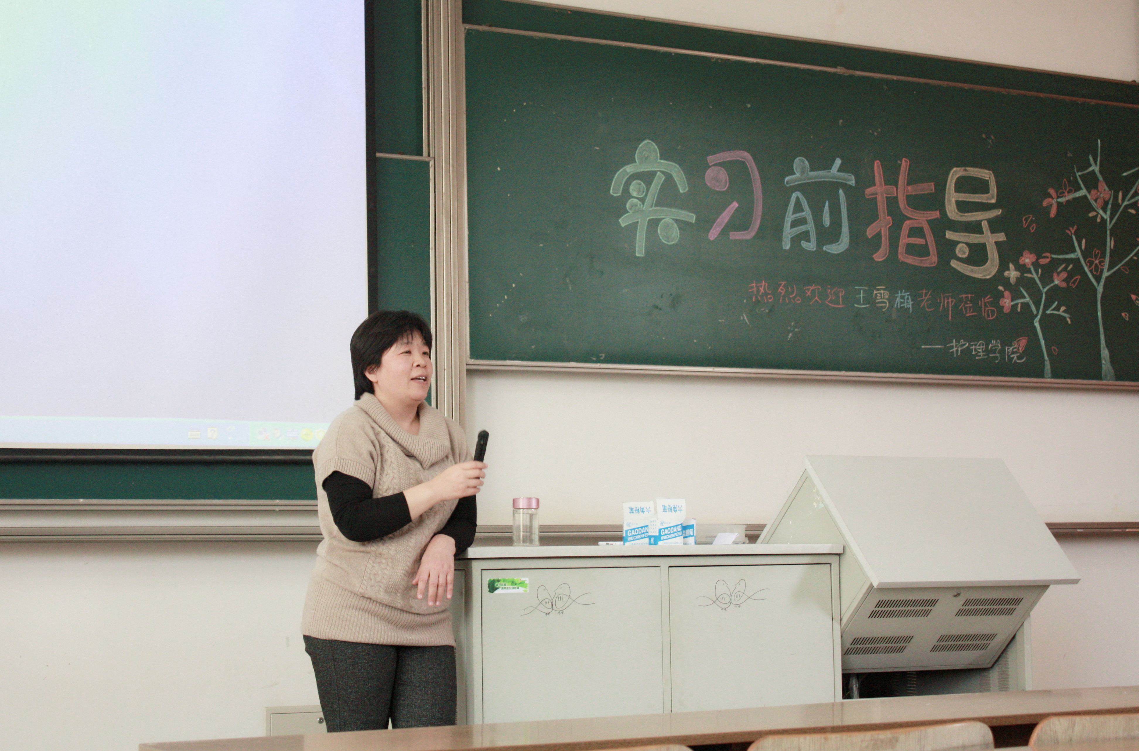 首先,王雪梅老师从实习前准备、如何面对实习过程中遇到的挫折与困难等多个方面为同学们进行指导,欢声笑语中让每个人都受益匪浅。王老师还与同学们分享了她自己的实习经历,从她的字里行间中,每个人都体会到那段实习经历为她以后的生活乃至人生带来了多么大的影响。王雪梅老师告诉同学们想要顺利地完成一年的实习生活,必须要准备好以下几点:第一,健康的身体是工作和学习的本钱,吃好喝好睡好;第二,做好思想和心理上的准备,以平和的心态迎接实习生活;第三,要有扎实的知识储备。同学们都认真地做着笔记。接下来,王老师与同学们进行了互动,耐心详细得回答了同学们提出的自己感兴趣的问题。例如,实习过程到底有多辛苦,医院会如何排班等。随后,王老师以“我是小小主人翁”为题,为同学们的实习生活提出了诸多切实可用的意见和建议。她说:“树立牢固的安全意识和规范意识,护理程序贯穿到每一个过程中,从正能量方面引导自己,善于借助外力,及时调整自己的心态,积极动手实践。”最后,王老师为同学们总结:“从大处着眼,从小处着手,忙时种田,闲时思考。相信同学们每字每句都会铭记在心。”