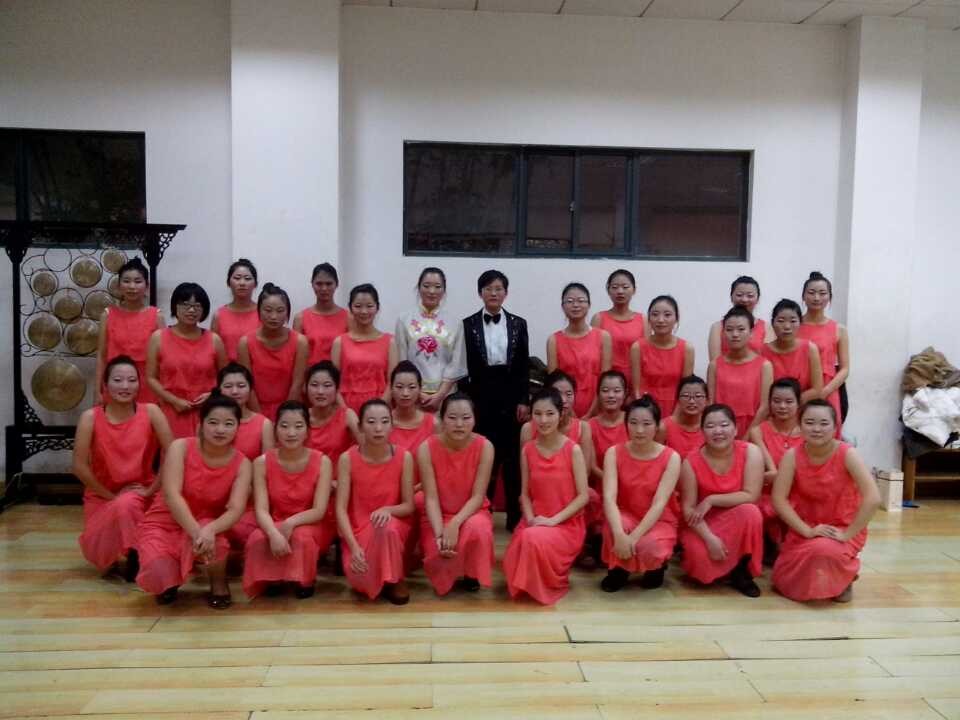 中午,大家为了可以在晚上的比赛中表现得更好,仍在大活紧张地排练着。吴菲老师和付梦楠老师也在百忙之中抽空到大活给予大家一些指导与鼓励。老师们的鼓励使大家斗志昂扬。比赛前,2班的妹子们早早地换上一身粉嫩长裙并各自定好了妆,在寒风中等待着入场。随着学姐们的加油声“护理2班,非同一般”,32个女生和2个男生走上了舞台。灯光亮起,粉色长裙在灯光下衬出女孩子们的灵动与可爱。音乐响起,身穿黑色燕尾服的“小马哥”轻轻地扬起手,深情地指挥着,大家也把目光统一地集中在小马哥的身上。紧接着陈云同学身着一套草绿舞台服,手持粉红雨伞进入了大家的视野,她的舞步与我们的歌声相互缠绵,柔美而优雅。第一排的八个女孩子们打起了手语“我是一颗小小的石头……”同时后面的三排同学把点亮的蜡烛灯置于胸前,寓意即将作为一名医护人员的我们,对于未来服务他人的期盼与决心。一曲终末,灯光消失,我们的表演完美地落下帷幕,最后在学姐们的助威声中退下了舞台。