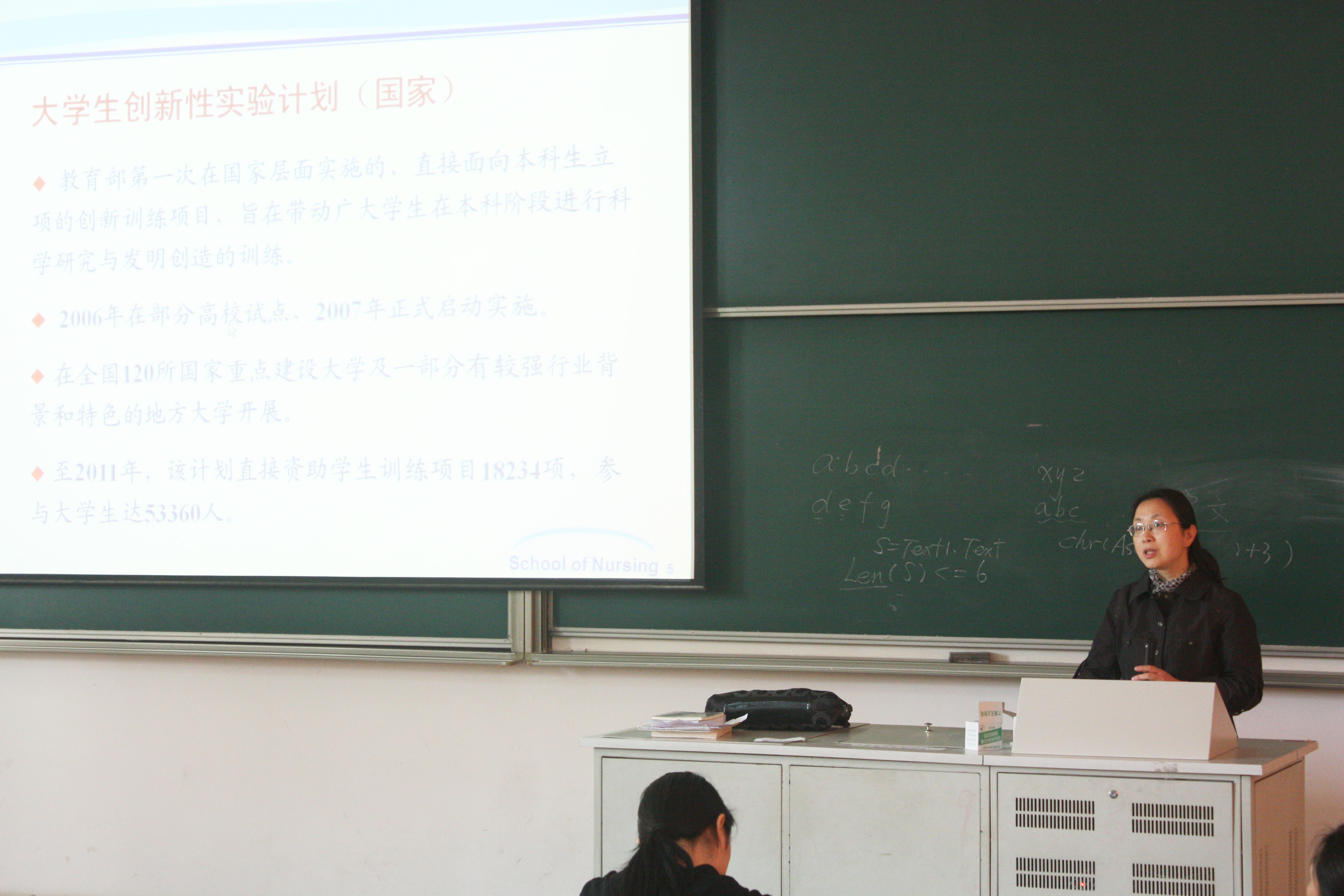 2014年4月4日中午12:30,崔焱院长和丁亚萍老师在阶五给12级所有同学开展了博雅讲坛系列之关于大学生创新计划的主题讲座,旨在让同学更加了解科研以及它的意义何在。