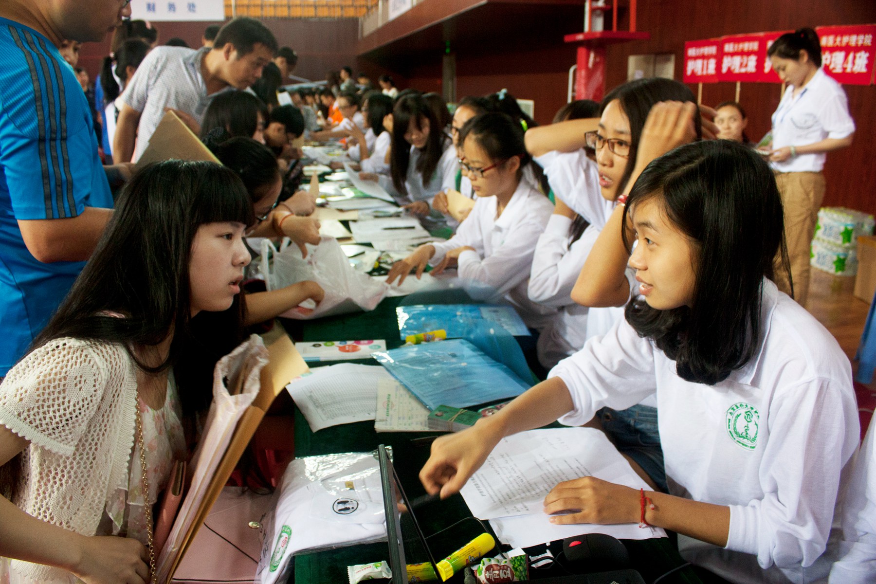 早上七点,学院的迎新工作正式开始了。随着新同学的陆续报到,志愿者及相关工作人员也渐渐忙了起来。身穿白色院服的志愿者们穿梭在人群里,为新同学引路,帮忙搬行李去宿舍,尽心尽力地为每一位新生和家长服务着,给他们提供最大的方便。在各个路口和“新生报到处”指示牌处的志愿者们也尽职地为新生和家长指路。在体育馆报道注册的工作人员热情地接待每一位新生,耐心地指导他们做好相关的报道注册流程,身穿米兰(中国)让运动改变生活院服的志愿者们也热情地帮助新生。