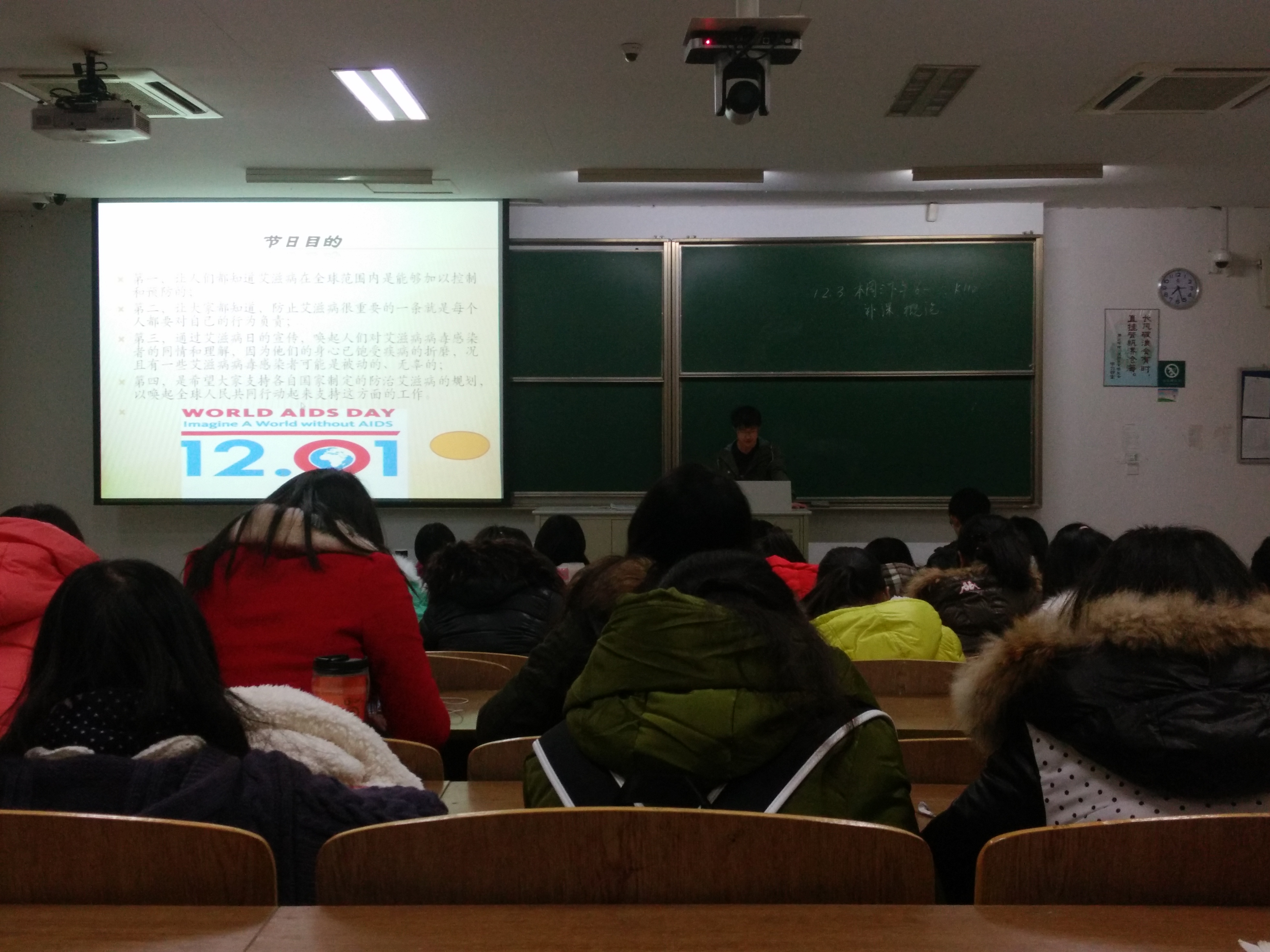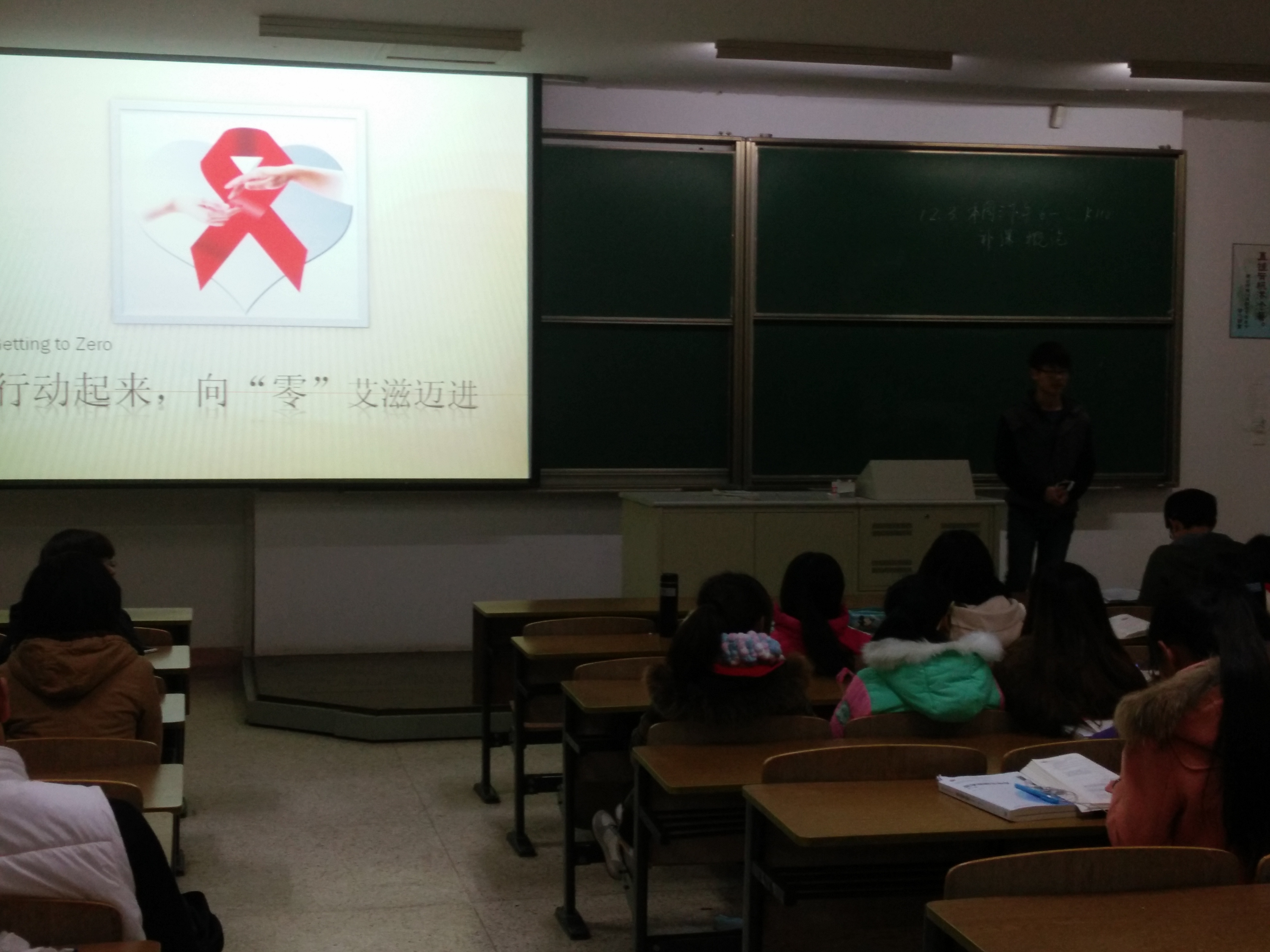 2014年12月1日是第27个世界艾滋病日。今年的“世界艾滋病日”主题宣传暨“美好青春我做主红丝带健康大使青春校园行”启动仪式在北京大学举行,活动主题仍为“行动起来,向"零"艾滋迈进”(英文主题为Getting to Zero),副标题为“凝聚力量,攻坚克难,控制艾滋”。通过开展系列宣传教育活动,让全社会进一步深刻认识到艾滋病防治工作的重要性、长期性、艰巨性和复杂性,广泛动员各级政府、部门、社会组织和志愿者,集中各方面力量打好防艾攻坚战,全面完成“十二五”防艾工作目标,控制艾滋病流行。为了响应国家号召,提高同学们对艾滋病的认识,米兰体育14级5班与6班共同开展了题为“行动起来,向‘零’艾滋迈进”的宣讲活动。主讲人为14级护理6班安全委张海林同学。