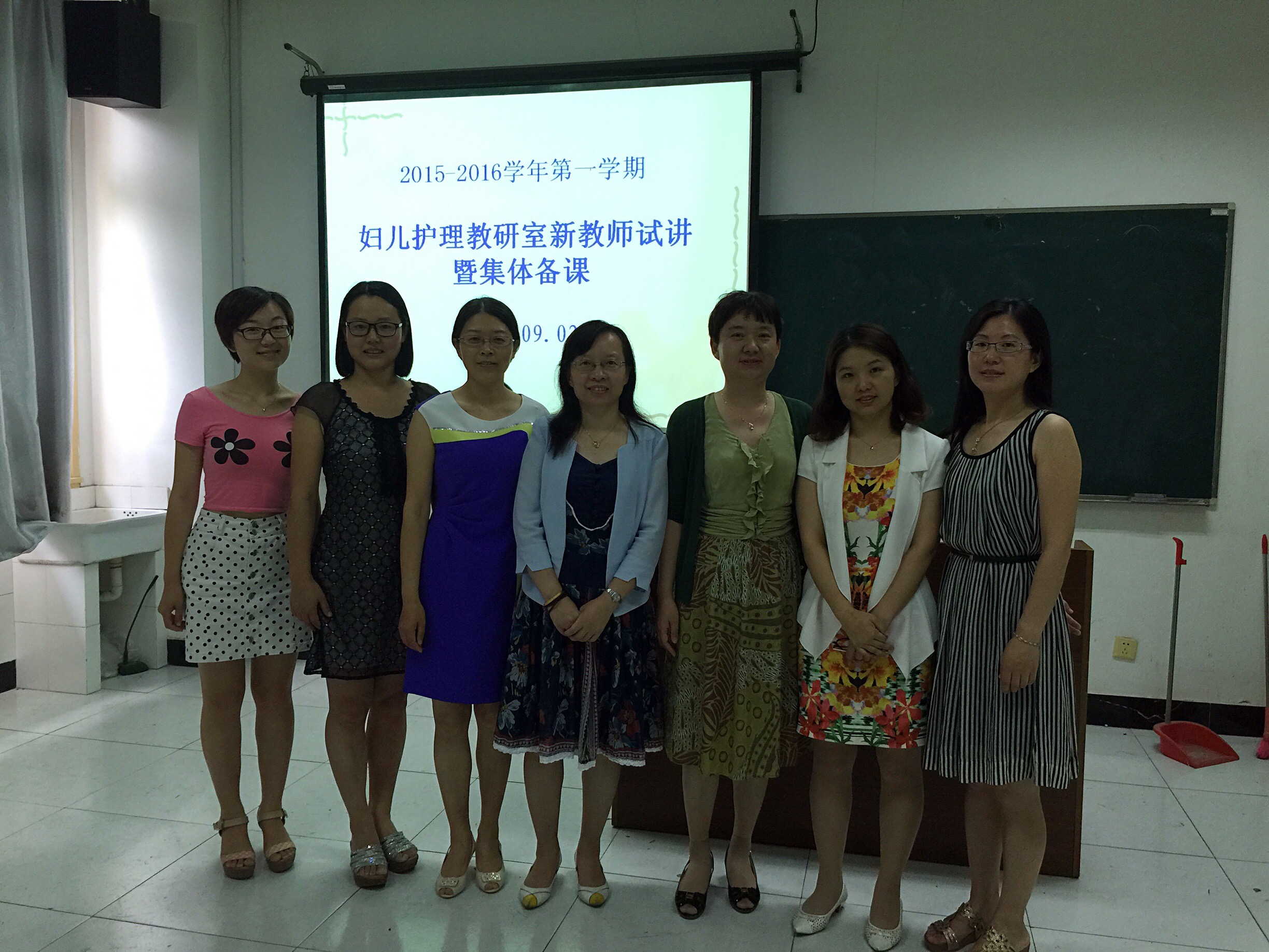 2015年9月2日下午2点半,新学期第一次妇产科护理教研活动于开学伊始在2-431拉开帷幕。学院副院长许勤老师、妇儿护理学教研室主任董玲老师、副主任汪璐老师及唐慧婷老师、护理管理学教研室副主任朱军华老师,以及来自鼓楼医院和南京市妇幼保健院的金靓、周春秀护士长齐聚一堂,为新教师初次担任教学任务把关,为新学期妇产科护理教学献计献策。