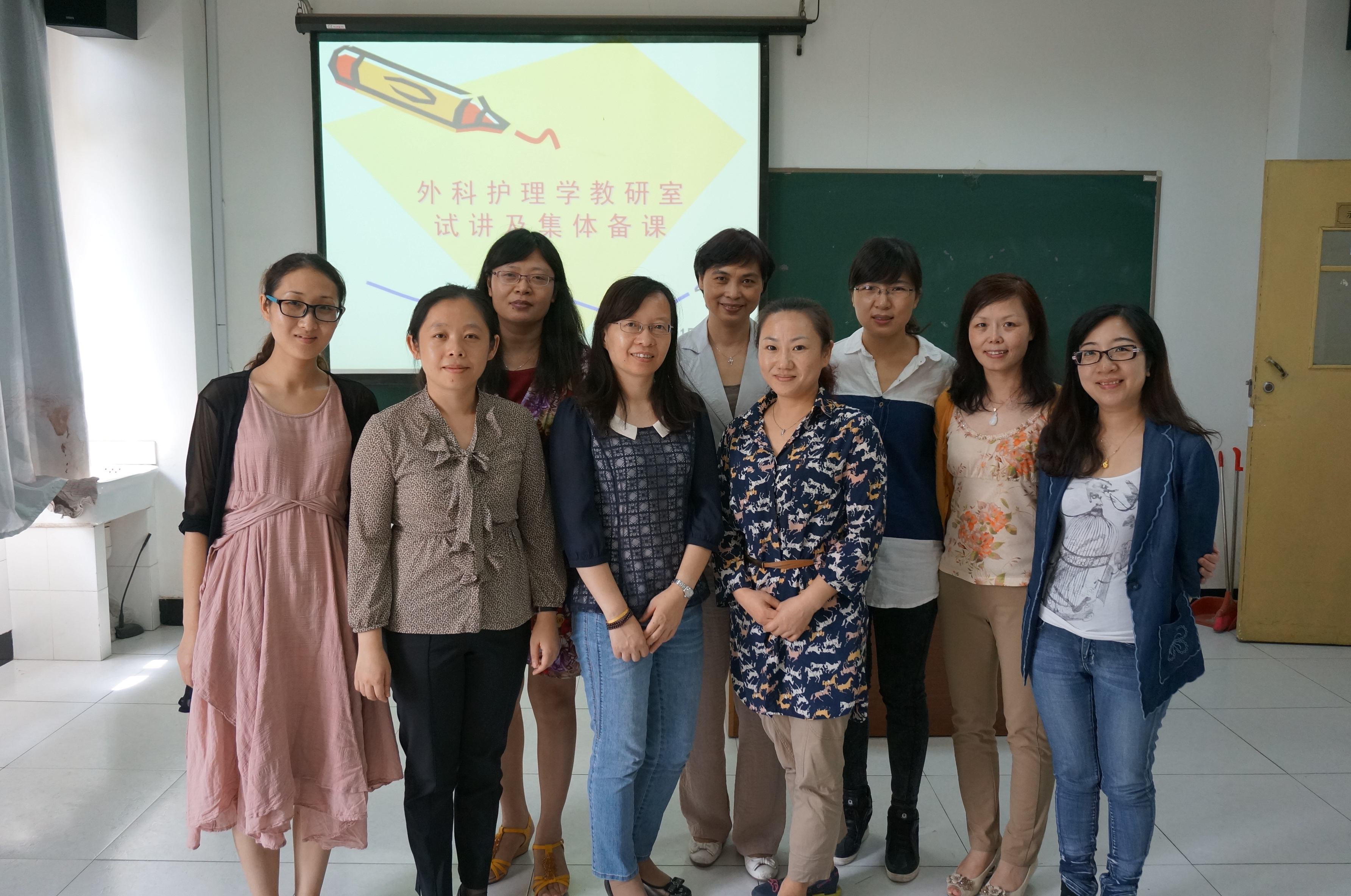 为提高新教师讲课水平,保证教学质量,外科护理学教研室于2015年9月24日上午组织了《外科护理学》课程的新教师试讲和集体备课活动。学院副院长、外科护理学教研室主任许勤老师、实验中心主任陈明霞老师、基础护理学教研室主任丁亚萍老师、南京市第一医院的老师们及学院教研室老师参加了活动。