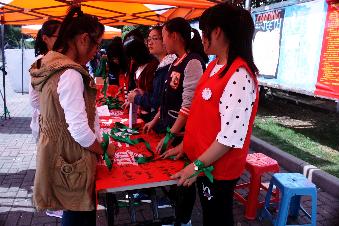绿丝带是中国精神卫生标志。绿色代表健康,寓意爱心,既是社会和公众对精神病患者的理解与爱心的表达,更是一种倾力支持精神卫生工作和不断完善精神健康,共创和谐社会的行动标志。在活动过程中,我们为前来支持活动签名的同学系上绿丝带,“飘动的绿丝带”表达出社会和公众对精神卫生工作的支持,对精神病患者的关爱,对自身精神健康的关注!活动过程中,绿丝带也展示了一些日常活动图,现场招募注册志愿者,宣传绿丝带活动,号召更多的同学加入进来,以达到全民公益的目的。