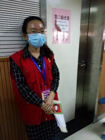 这次我们四个人两两搭档,两个人在眼科验光室,两个人在B超室。验光室的家长相处的还是很融洽的,这可能与非急诊就医有关吧。原本以为不会有多少人的地方,却一大早就有人等待,科技的发展让孩子们的视力水平逐步下降,这是让人感到心痛的。而在那边的工作并不轻松,家长总是在询问为什么还没轮到自己,或是试图进入验光室,亦或者担心别人抢自己前头。志愿者们在那儿应付着各种各样的情况,并且站了3小时后,才暂时结束了工作,十分辛苦。侯诊处的凳子严重不够,好多家长和孩子只能站着等,有些家长甚至带着孩子坐在楼梯口。而且验光速度比较慢,所以好多从安徽赶来的家长都没排上当天的号,给就医带来了极大的不便。所以我们觉得周六周日可以加大医生的资源投入。
