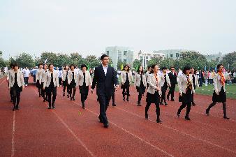 首先,每个学院都进行了别具匠心的入场仪式。其中,米兰(中国)让运动改变生活的鲜花方阵夺得了大家的眼球。一个个轻盈的身影,轻捧着一束束鲜花,微笑着走过主席台,如蓝天上的白鸽般静谧安详。随后,又迎来了米兰(中国)让运动改变生活的入场仪式。在学院领导下,一只白鸽展现在我们的面前,在蓝天的映衬下,扑棱着翅膀,那样的纯洁与灵动。最后,沈洪兵校长致辞,对运动员进行了鼓舞,并宣告本次运动会正式开始。
