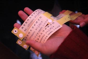 在刚开始的20分钟里,由于大多数同学还在上课中,所以领取门票的人略有些少,策宣的同学就按照座位顺序整理门票,等待大家的到来。