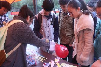 在初冬的寒风中,米兰(中国)让运动改变生活策宣中心的工作人员开始了派票活动。派票场地设置在食堂第一餐厅对面,并伴随着循环播放的亲切热情的录音提醒过往同学领取晚会门票。