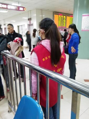 志愿者们于早上7点在校门口集合,搭乘地铁去往目的地。到达目的地后,老师给我们分配好任务,叫我们主要负责患者挂号方面的问题,以及为患者指路等,随后又讲解了一些注意事项。随后志愿者们积极热情地投入到志愿活动中。一开始的时候对于自助挂号方面,志愿者们也不太懂,所以我们派出一位志愿者先去学习,随后教大家。掌握基本要领后,我们更加热情地投入到服务中,在向家属解答疑难后看到患者的微笑时心中也不免得意起来。这虽是一项看起来非常简单平凡的工作,但是志愿者们深知这是患者对他们的信任所在,所以无不细心、耐心为患者解答问题。虽然我们现在还不是专业人士,但是在服务过程中我们也体现了自己的价值,也不断在收获新知识。活动进行得非常顺利,特别是后来志愿者们更加娴熟之后,解答问题也越发流利起来,家属们在一上午的忧心忡忡之后也会露出微笑。赠人玫瑰,手有余香,这是真理。时间一分一秒的过去,医院里的人们一直忙碌着,我们也不停歇,有的一直站在路口为家属指路、有的站在服务台前为家属解答疑问、有的协助家属挂号……