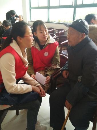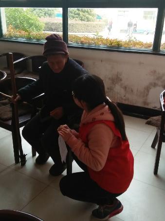 进去之后,看见那里已经有很多志愿者了,那些大概是别的学校的或者是义工吧。看见义工给爷爷奶奶们剪指甲,刮胡子,大家似乎内心掀起了一鼓动力,要让这些爷爷奶奶开心。于是,大家两两一组,去找爷爷奶奶聊天。