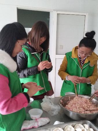 接着我们去了厨房,帮忙包饺子,十分有意思,从中学到了包饺子的方法,更让人觉得有意义的是饺子里包含了大伙对老人们的一份关怀与爱心。除了帮着包饺子,我们大伙还和老人们聊天,愿意听他们吐露心声。从他们的眼神中,我感受到了孤独,这种种孤独是能够穿透人的心灵。为了让他们开心,我们几个人想尽办法,最后终于被我们逗笑了。在整个过程中,让我们感到欣慰的是这些老人的居住环境,敬老院专门有病床室,治疗室……设备齐全。时间过得真快,到了快离开的时候,心里有太多的不舍…………