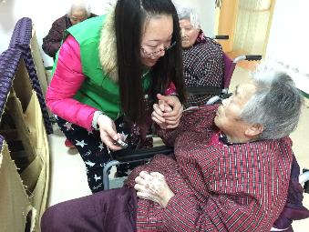 有一位老奶奶,一直在流眼泪,就像小孩不给吃糖一样,不开心。志愿者走过去,一下一下轻抚后背,一边念叨:“没事,没事,啊”这位老奶奶委屈的点点头,真的好可爱。老奶奶一直在念叨:“都不理我,都不理我”我能感受到奶奶脆弱的内心,没有家人看望,不能走,看不见。志愿者像哄孩子一样耐心,慢慢开导,帮她剪了指甲,用自己的手去焐热奶奶的手也想焐热她的心。