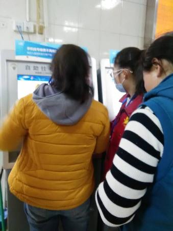 中午吃过饭后,我们又被安排在自动挂号缴费处,家属不会的,我们都会上前去为其解答疑难。两点半之后,我们这次的志愿服务算是结束了。走之前,还和医院安排志愿的老师聊了会天,也算是收获颇多,更加的了解了我们将来的工作环境。