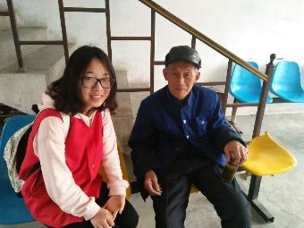 志愿者们到了敬老院后发现老人们大多都待在屋子里。于是,大家商量后决定两人一组到老人屋子里找老人聊天。一个小组很快的找到了一个人待在屋子里的老人,她们拉着老人亲切地聊天。大家看到出来散步的老人们都亲切的打着招呼:“爷爷(奶奶)出来散步呀!”爷爷奶奶们也会笑着向同学们回答:“对呀!雨停了,出来活动活动。”还有的老人坐在楼道那边聊天、听戏,其余的志愿者们就主动过去与爷爷奶奶聊天。