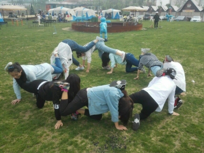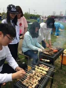 在绿博园门口,同学们纷纷拍照留念。在烧烤园里,班长王慧和生活委员方晓雅同学安排了烧烤事项后,同学们拿出烧烤材料,铺好锡箔纸,由擅长烧烤的张科和朱海宝同学“掌勺”,气氛十分融洽愉悦。继而,同学们去了游乐场,并进行了吹气球比赛、“护花使者”PK以及真心话大冒险等游戏。获胜者将获得礼品。