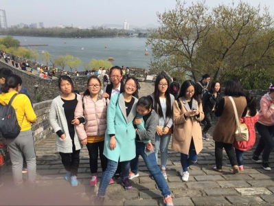 在淡淡的樱花清香中,大家一路参观了铜佛殿、琉璃世界、大悲殿、天王殿等地方,深受南京鸡鸣寺历史文化的感染与熏陶。继而,大家怀着愉快的心情在玄武湖景区里一同参观了菱洲、郭璞纪念馆、梁州、翠洲等地方,心情甚好,流连忘返。