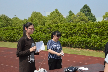 温度虽高,但是却无法影响大家的热情,下午2点,所有参赛选手及工作人员都聚集在操场上,认真地听体育部部长顾梦颖对活动规则流程的讲解,在抽取了每队的序号后,活动正式开始。