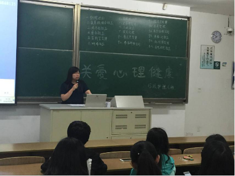 每年的5月25日是全国大学生心理健康日,倡导大学生“珍惜生命,关爱自己”。值此之际,15级护理4班举行了心理健康主题活动。活动前期由班委队本班同学进行了心理压力调查,总结分析调查结果,最终完成了15级护理4班学生压力调查报告,并邀请代理班主任羊洋老师于5月19日下午在B204为同学们带来了一场心理健康报告会。