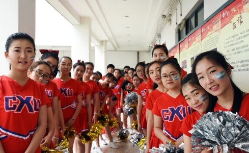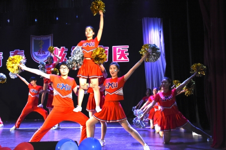 16:00整,身穿运动装的主持人上台宣布此次决赛开始。主持人简单介绍完比赛评委后,以13个参赛团体的啦啦操表演为主要内容的第一轮表演环节开始。场内的气氛即被点燃。台上参赛选手们那富有活力的表演,连贯的动作让观众们连连鼓掌喝彩。我院的参赛团体15级护理八班团支部第七个出场。出场前,我院在台下的观众为她们喊起加油的口号“护理护理,青春奇迹,舞动青春,舞动奇迹,加油!加油!”场内的气氛持续高涨,台上表演的同学统一身着正红色的服装,让人眼前一亮。当配乐“Girl friend”响起时,台上的同学便正式开始了早已排练多次的啦啦操。连贯的动作间彰显着她们激扬的青春活力,同学紧密协调的配合与默契度也让本次啦啦操比赛变得更为出彩。
