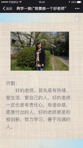 崔焱院长认为好老师要能够做到严于言传身教,勤于授业育人,善于解疑解惑,乐于平等待人。顾汉展书记认为大学生是一个非常特殊的群体,年龄大都介于18-23岁之间,刚刚从父母的呵护、照顾下走出来,开始自己独立的学习和生活。作为一名大学老师责任重大、使命光荣,理想中的大学老师应该是学生们的人生导师、学生们的授业恩师、学生们的知心朋友。许勤副院长谈及好的老师,首先是有热情、爱生活、爱自己的人,一定也是有责任心,有使命感,愿意付出的人,更是积极创新,努力学习,善于沟通的人。朱姝芹老师从“教书”与“育人”的角度,讨论了好老师自身的职责以及使命。丁亚萍老师认为崇高的师德,高度的责任感,渊博的学识,不断的钻研,健康的情绪,同时富有爱心耐心是好老师的基本特征。陈明霞老师认为一名优秀的大学教师在教学工作中要正确处理好三个方面的关系教书和育人的统一;爱生和尊师的统一;教学和科研的统一。王丽丽老师从教师专业发展的角度,认为好老师要坚持仰望星空与脚踏实地相结合,走自主发展之路,走专业化发展之路,才能成长为一名受学生爱戴的好老师。张俊老师认为好老师要有理想信念、高尚的道德修养、扎实的学识、仁爱之心,公平对待每一个学生,树立以人为本的教学理念,教学中不断反思总结和提高。嵇艳老师从大学教师教学的角度,认为好老师要会创造出自然的批判性的学习环境,激发每个学生的兴趣,帮助每个学生理解所学知识,培养深度思考,包容多种视角,帮助他们达到最佳状态。唐慧婷老师对“好老师”的理解是有责任心、有扎实的理论储备和娴熟的临床操作技能。好老师的“水”应常流、常新,应“会倒水”,好的教学应不止于给学生“一滴水”,更应让学生享受遨游在知识海洋中的乐趣,并能学会寻找自己所需要的任何水源。李现文老师认为学高为师,身正为范,是为师范,是为好老师。