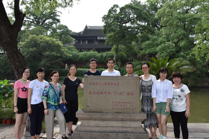 首先到达南湖湖心岛,停泊在烟雨楼前的画舫红船印证了党的光辉历史,向人们生动展现了中国共产党诞生的历史场景,至此中国革命翻开了崭新的一页。党从南湖的“红船”起航,开始了漫漫征程,克服重重困难,在逆境中谋求发展,成为领导中国革命胜利带领人民致富建设富强新中国的伟大政党。在“中共一大会址”的石碑前,老师们纷纷合影留念,重温党的光辉历史、优良传统,坚定党的信念,做合格党员。