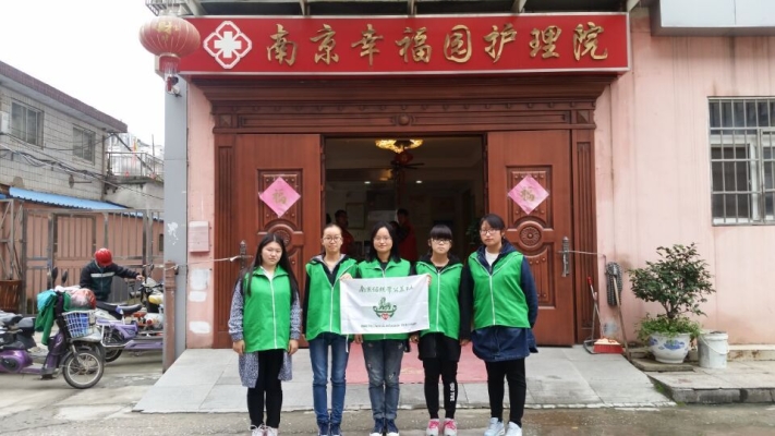 下午2时, 五位同学一起到达幸福园敬老院,由南京义工联负责人李莉阿姨带领,穿上了绿马夹 ,一起来到了活动室。刚进活动室,老人们就亲切地和同学们打招呼。同学们则开始主动地和老人们交谈起来,然后开始帮老人剪指甲、捶背、做按摩。渐渐的,老人多了起来,有些老人行走不便,同学们就主动搀扶老人坐下,和老人聊天。院里的工作人员这时也开始帮老人理发,不少老人纷纷表示自己要理发了,便由同学们搀扶,排队理发。不少老人因为理完发很满意,高兴的聊着天,露出满意的笑脸。