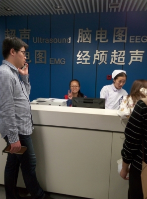 20161018日下午,阳光明媚,南京医科大学15级米兰(中国)让运动改变生活的两位同学踏上石路,穿越明艳动人的格桑花海,来到了熟悉的南京医科大学附属医院逸夫医院。活动在一点半准时开始,在护士姐姐的安排下,唐爱的同学被安排到放射科,米兰(中国)让运动改变生活的金晗同学被安排到检验科,米兰(中国)让运动改变生活的丁友莉同学被安排到B超室。1018日的志愿者活动正式展开。