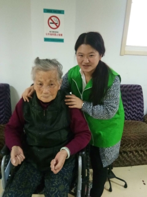 下午2时, 五位同学一起到达幸福园敬老院,由南京义工联负责人李莉阿姨带领,穿上了绿马夹 ,一起来到了活动室。刚进活动室,老人们就亲切地和同学们打招呼。同学们则开始主动地和老人们交谈起来,然后开始帮老人剪指甲、捶背、做按摩。渐渐的,老人多了起来,有些老人行走不便,同学们就主动搀扶老人坐下,和老人聊天。院里的工作人员这时也开始帮老人理发,不少老人纷纷表示自己要理发了,便由同学们搀扶,排队理发。不少老人因为理完发很满意,高兴的聊着天,露出满意的笑脸。