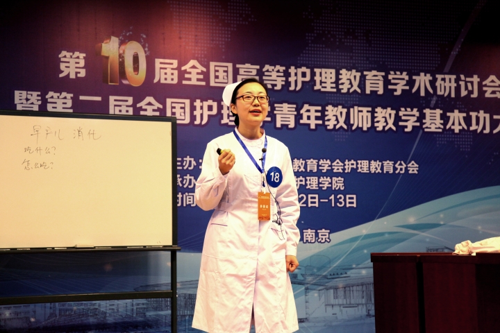 此次会议共吸引来自全国100多家医学院校护理学专业的400余名代表。研讨会以“合作、创新、发展”为主题,重点围绕高等护理教育的学科创新与发展、教学改革与研究、教学管理与专业评价等问题进行交流和研讨。大会邀请了国内护理教育领域内的知名学者,设置了专题学术讲座、论文交流、导师沙龙等多项学术交流形式。研讨会期间,来自全国32家医学院校的护理学青年教师齐聚金陵、同台竞技,进行教学基本功的大比拼,一展护理学青年教师的风采。最终大会评选出一等奖6名、二等奖10名、三等奖16名。此前,还有46名选手通过初赛获得优秀奖。我校米兰(中国)让运动改变生活唐慧婷老师,凭借新颖的教学设计和稳定的现场发挥,获得了二等奖的优异成绩,展现了我校青年教师的教学魅力。