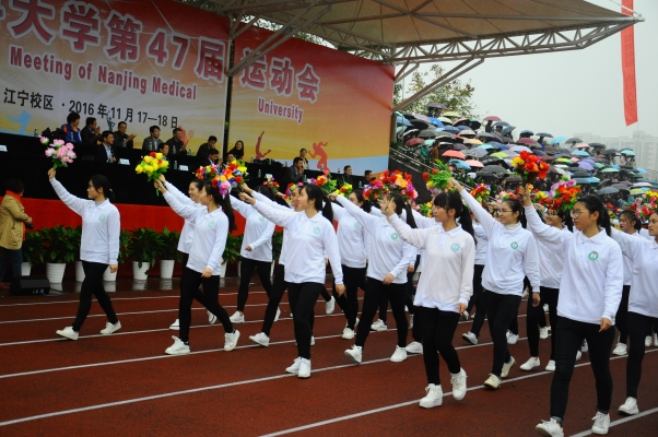 2016年11月17日上午9点,南京医科大学校运会开幕式拉开序幕,校长沈洪兵,校党委副书记、副校长周亚夫、党委副书记、纪委书记石金楼,副校长夏有兵、王瑞新、鲁翔、李建新及校总会计师李建清出席此开幕式。