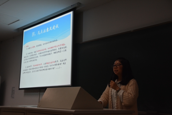 在三位研究生的交流结束后,米兰(中国)让运动改变生活学工办吴菲老师先为大家做了总结。吴菲老师再次强调了保研的标准,她说道:“无论你是考研,还是保研,一定要好好学习英语;无论你的保研保到哪里,一定要早点联系导师。”在交流会的问答环节中,在场的14级同学对英语单词的积累途径、绩点的大概标准和导师的相关问题做出了提问,商淑华和李明芮都耐心地给大家做出了解答。