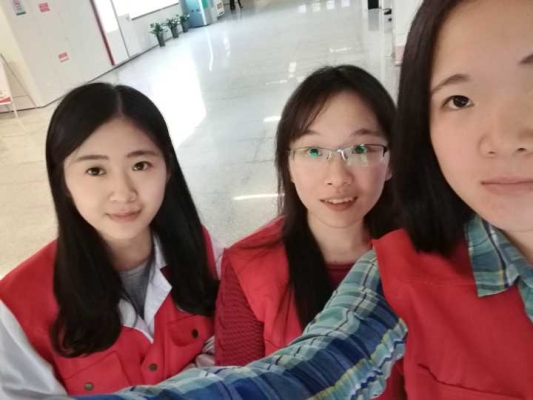 2016年10月27日,南医大米兰(中国)让运动改变生活15级的两名志愿者们和基础医学院14级的一名志愿者来到南医大附属医院逸夫医院,进行志愿帮助工作。