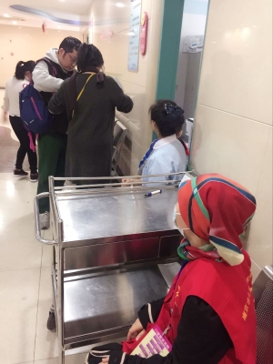 志愿者们在医院的主要任务就是给病人指路,帮助护士在B超室收检查单以及维持秩序,儿童医院的人很多,家长也会因为自己的孩子生病而比较焦急,在整理检查单的同时也要向家长解释说明很多东西,有的家长匆匆忙忙,检查时需要带的东西都没带,所以我们就要一遍遍地提醒他们带齐东西;儿童医院很大,有的家长不认识路,所以还要给他们指明路线;有的家长会因为心急,不去排队,为了不使其他家长们抱怨,志愿者们还需要去找插队的家长协商;有时候突发一些事也需要去处理,常常会感觉顾不过来,如果没有志愿者的帮忙,一位护士是很难完成好这份工作的。通过这次志愿活动,志愿者们感觉到了医院服务人员真的很辛苦,也能直观地体会到社会对护理人才的急需。医院里的护士姐姐对志愿者们很热情,分享了很多自己的亲身经验,鼓励志愿者们一定要好好学习,还给志愿者们讲从现在开始就培养与人交往的能力,遇到问题时,一定要先冷静下来后处理问题,不然会带来各种麻烦等等。志愿者通过这次活动深切地体会到应该好好学习专业课程,将来努力为人民服务,治好病,给大家带来快乐。