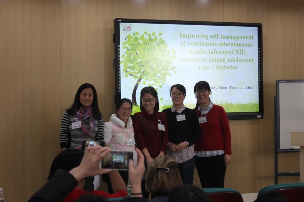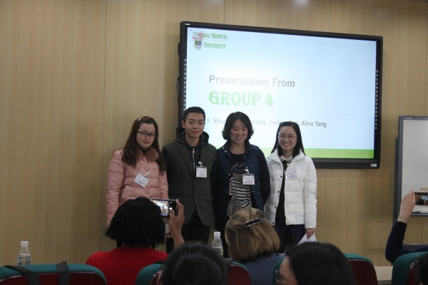 结业典礼上,参加人员分组轮流上台展示小组对于运用评判性思维解决临床问题的研究结果。论题有如何降低老年人坠床的情况、如何提高学生护士的临床技能以及程序转换问题等。每个小组成员上台讲述时都毫不怯场,用英文把自己的成果进行展示,对老师的提问也对答如流。有几组采取了边讲边写的形式,将叙述的内容用表格图形显示,使表达更加直观,在展示过程中连连受到老师的夸赞。在一组进行展示的时候,下一组早早就在台下准备着,这也使展示过程十分流畅,节省了许多时间。每个小组展示之前都拍了合照,气氛十分融洽。