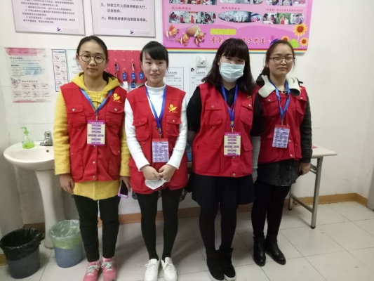 志愿者们领好红马甲,签到之后就各自去自己的岗位。说句实话,由于儿童医院的特殊性,孩子生病,可怜天下父母心,大多数家长心情都不好,然后脾气态度可能在这种焦急难受的心态中就不是很好。到B超室帮忙排号叫号的两位同学一开始有点害怕,总是害怕会由于自己的过失而带来不好的影响。