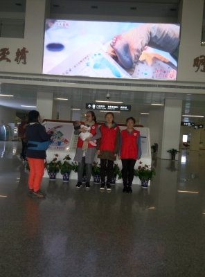 虽然天气寒冷,但是志愿者们下午1:20准时在逸夫医院大厅集合。在老师的安排下,志愿者刘晓洁在B超室协助护士姐姐进行盖章叫号等一系列工作,志愿者金晗在检验科帮助抽血的患者们取报告单,志愿者丁友莉在医院大厅为来往患者提供指路、取报告单等一系列帮助。