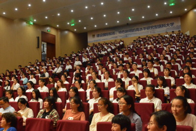 会议伊始,管书记致辞欢迎2017届全体新生,向大家的到来表示了热烈的欢迎。紧接着,护理实验教学与示范中心主任陈明霞老师作为教师代表发言,她以“儿行千里母担忧”为题提醒新生们把健康、安全问题放在第一位,凡事三思而后行。陈老师还提到了学习问题,由于高中与大学学习氛围与要求的改变,同学们要提高自主学习能力,同时,老师们也会做好传道授业解惑的本职工作,做好同学们的良师益友。其次,陈老师就素质修养方面向同学们提出了要求:“主动迎接挑战,规范言行,健全人格,培养责任心,使命感。”最后,陈老师祝福同学们尽情享受大学生活,欣赏这段人生中最美的风景。