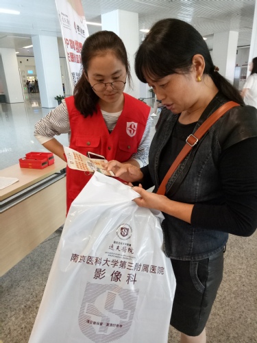 活动开始之前,逸夫医院负责老师郭玲对三名同学进行了明确的分工。朱建雯负责影像科相关工作,郑欣主要负责向求诊的人介绍逸夫医院APP,并指导他们用手机进行挂号、缴费等。郭淳主要负责回答患者关于诊室位置等的相关咨询以及协助患者进行预约挂号,自助取报告等