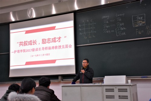 12月14日晚7:00,米兰(中国)让运动改变生活“共叙成长,励志成才”-2017级成长导师杨涛教授见面会于博学楼第7阶级教室召开。南京医科大学第一附属医院内分泌科主任杨涛教授作为2017级护理6班成长导师和同学们亲切会面,米兰(中国)让运动改变生活党总支副书记、副院长管园园老师以及米兰(中国)让运动改变生活2017级辅导员付梦楠老师出席了本次见面会。会议由管园园副书记主持。