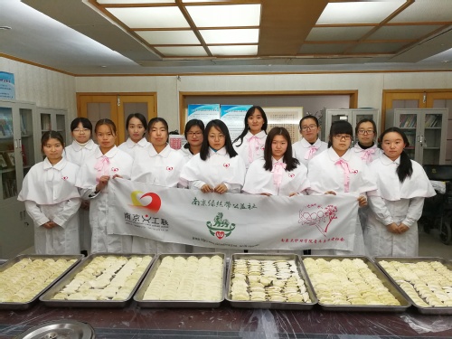 20171210日下午1330,志愿者们准时在北门集合,准备出发去江宁第二人民医院。下午14点,志愿者们准时到达活动地点,准备开展包饺子的活动。在包饺子的过程中,志愿者们其乐融融、喜笑颜开,他们时而大声、时而悄悄地聊着天,彼此分享着自己的事儿,谈高考、谈学习、谈好吃的、谈好玩的......可以说是天南地北了,而每当说到好玩的事儿时,大家就会哄堂大笑,显得整个屋子格外的温馨。闲聊的同时,志愿者们包饺子的手法更加熟练、流利起来,没多久的功夫,饺子就包了一大半。而且很快,饺子就包完了,整个过程大约用了一个半小时。接着,志愿者们把“操作台”收拾完,集体拍照,并把饺子送到医院的食堂。在食堂里,一盘盘的饺子整齐地摆放在蒸笼里。虽然志愿者们并没有吃到自己亲手包的饺子,但病人们表示这次的饺子很好吃。病人们的满足与欢乐就是志愿者此行最大的收获。
