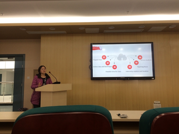刘玉同学简要介绍了Creighton大学米兰(中国)让运动改变生活的课程设置,比较了中美两校在教学方面的差异,分享了自己的学习体会和感悟,最后给有出国学习计划的师弟师妹们提出了建议。