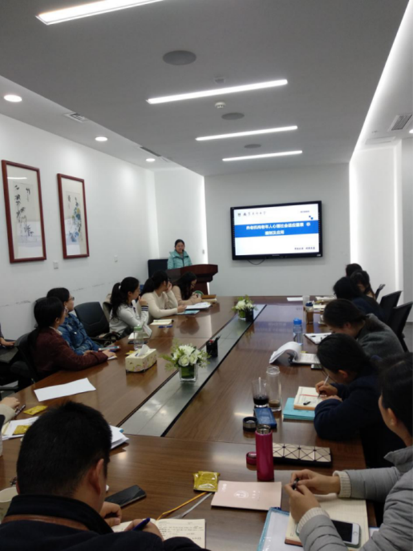 首先陈申博士跟大家分享了倾向值法在数据分析中的应用。陈博士结合自身硕士阶段的课题,为大家讲解了倾向值的概念,估算、应用方法及常用方法的软件使用。接着,孙昌仙博士汇报了她的课题进展:养老机构老年人心理社会适应量表的编制与应用,介绍了课题的立项依据及主要内容,目前的工作进展和计划。老师们对大家的汇报进行了非常细致的点评,并提出了比较实用的建议。