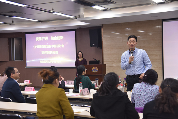 许勤副院长介绍了今年护理国自然项目申报启动前后的工作,并致热情洋溢的欢迎词。校党委书记王长青教授就护理国自然申报进行了专题辅导报告,王书记介绍了国自然基金的申报要点和注意事项,结合具体案例总结讲解了7个要点,内容深入浅出,通俗易懂,与会人员深受启发,会场内掌声不断。