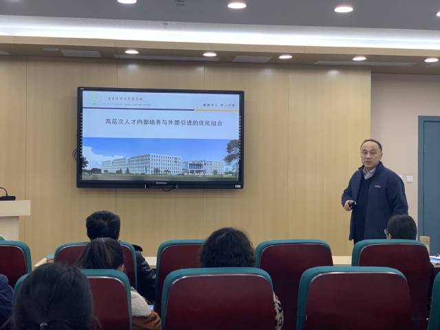 校人事处孙波处长就学院师资队伍建设谈了几点建议:一是要做好年度计划和远期规划的有效结合;二是要加大院院融合的力度;三是要找准学科方向,定点突破;四是要学院推进培育措施。
