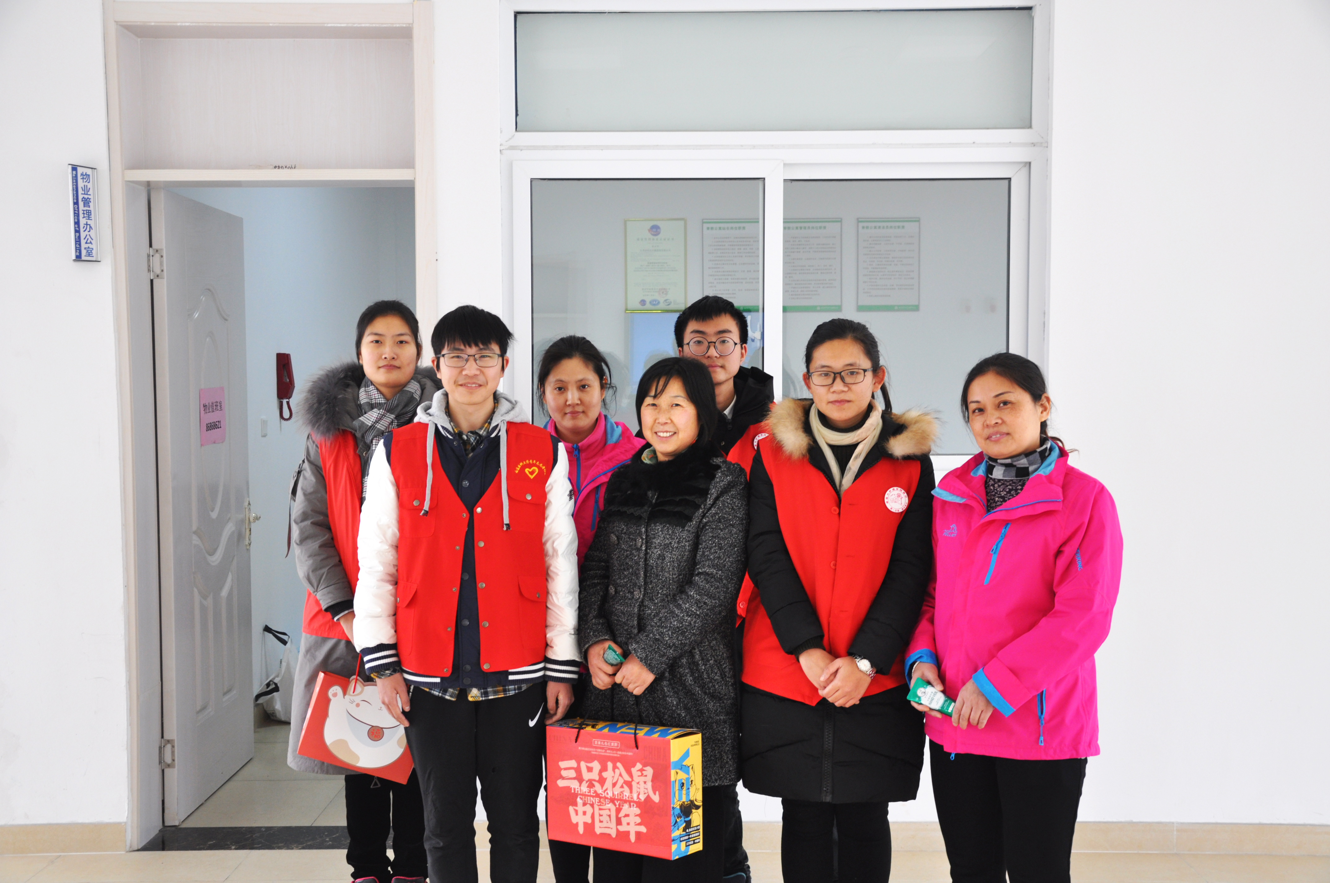 1月8日下午2:00,志愿者们来到了青教公寓。青教公寓宿管站的阿姨们热情地迎接了他们。志愿者们对阿姨们辛勤付出表示了感谢并送上了他们的新年祝福和精心准备的新年礼物。其中一位志愿者说:“阿姨,这是给你们的护手霜,有空就抹一点护手霜,两只手搓一搓,促进血液循环,还能让阿姨的手越来越好看,希望阿姨们永远年轻!”另一位志愿者说:“这是给阿姨的坚果礼盒,要过年了,吃点坚果有点年味,还里面的营养成分还可以预防心血管疾病呢!”阿姨们开心地接受了志愿者们的礼物,脸上洋溢着幸福的笑容,同时阿姨也表达了他们对志愿者们的新年祝福。